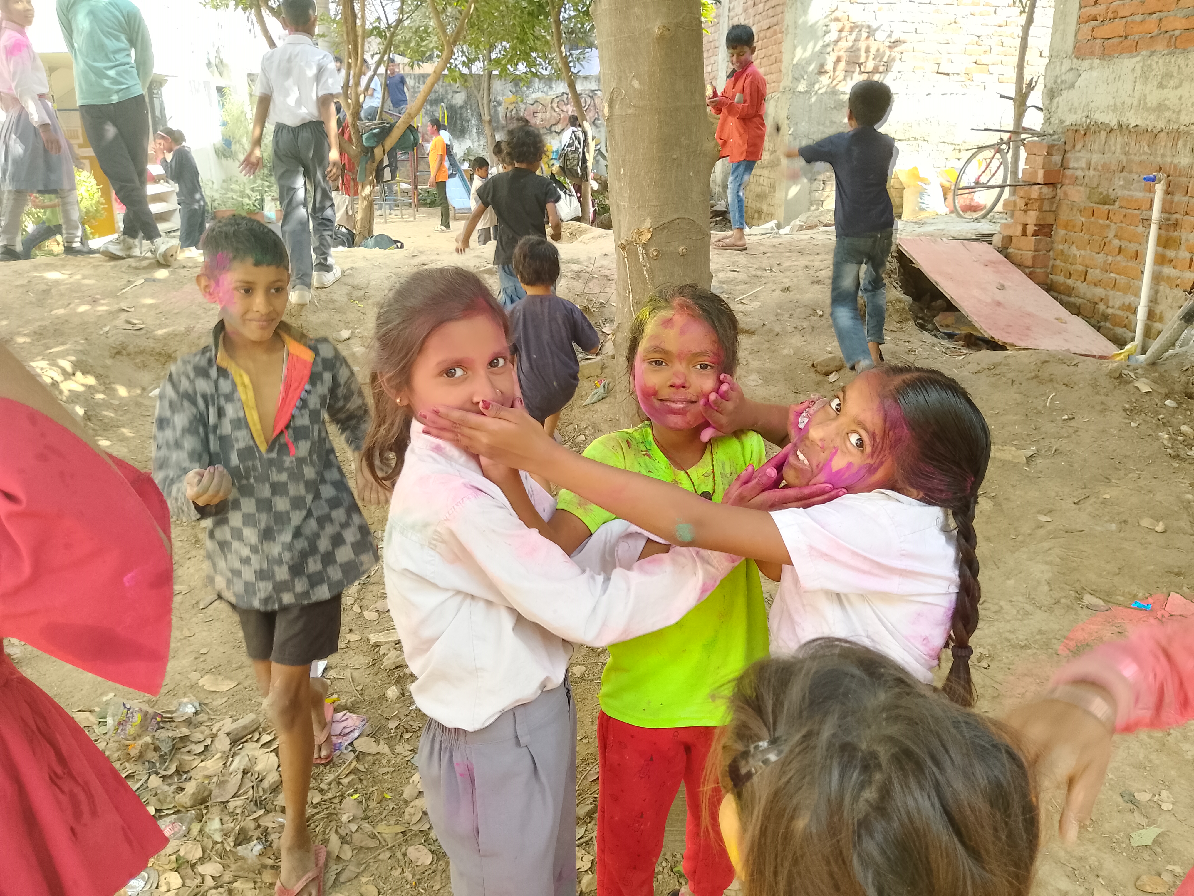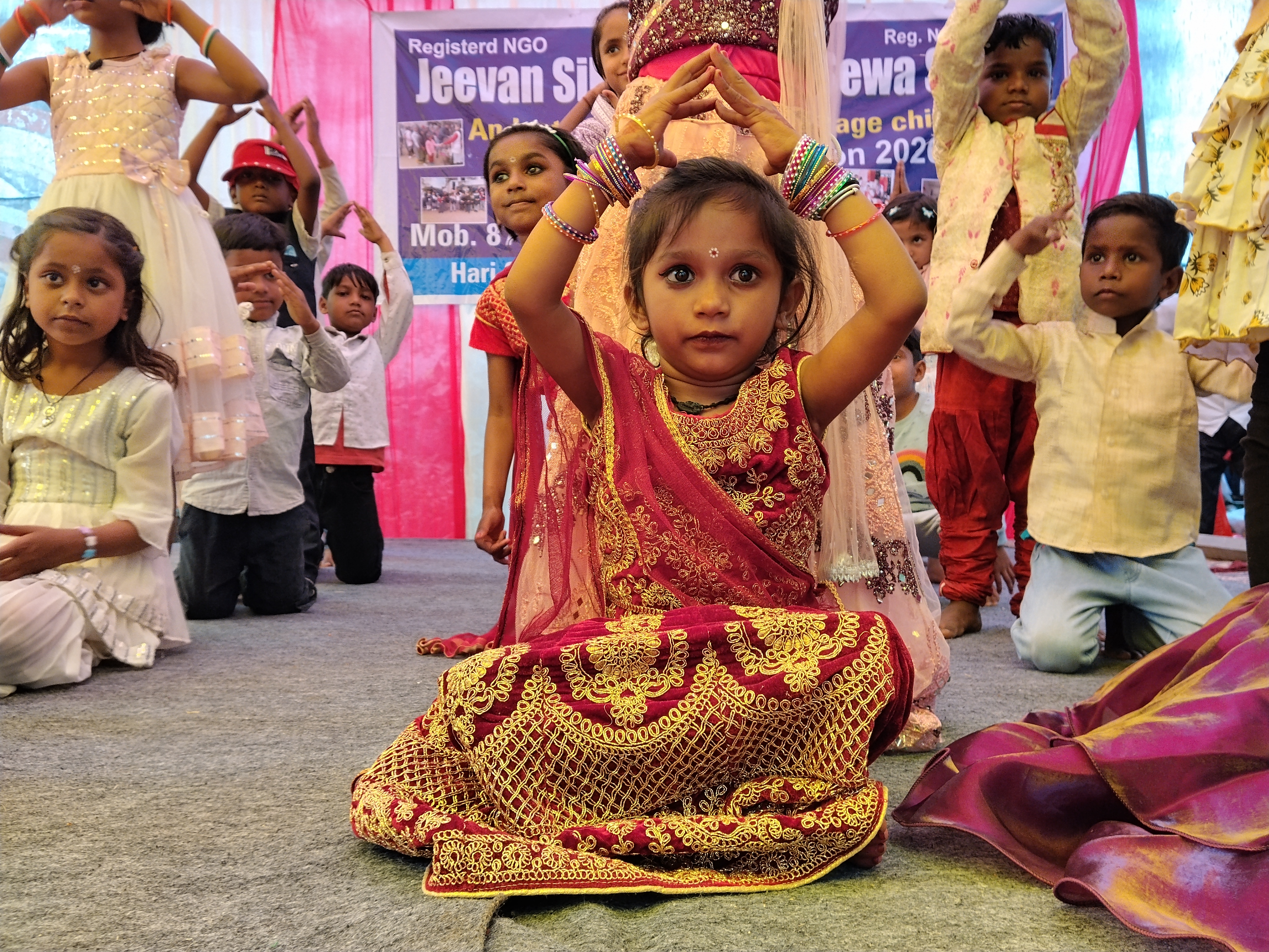 Science Experiment (Practical learning) Learning is easier when it is practical in life and more when kids are engaged. Our children feel much neglected because of the background they come from, so in Jeevan Siksha School teachers and students sit down on the ground on the mats together for both learning and eating so that they feel equal.